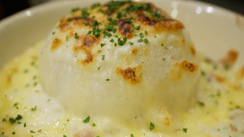 身体を温める「酒粕」。これをホワイトソースと合わせてチーズを乗せてグラタンに。
