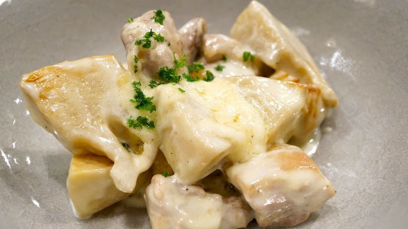 「クリーム煮」と言えば「洋」のイメージですが、「鶏」の旨味も加わり、「筍」が見事に「洋」に調和します。お試しを。