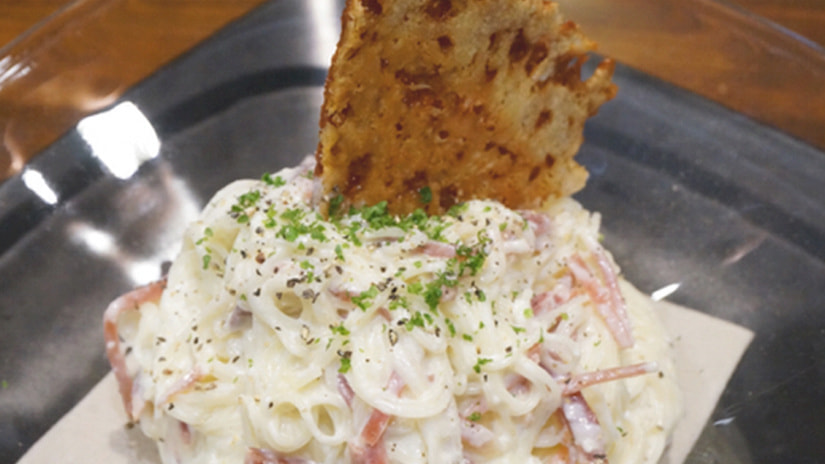 Thickly sliced "Renkon" is served with cheese sauce with bacon and cheese for gratin.