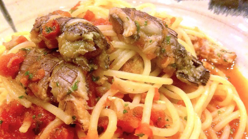 「ポン酢和え」にも使えるほどの新鮮なヤツを下拵えしてパスタに流用。